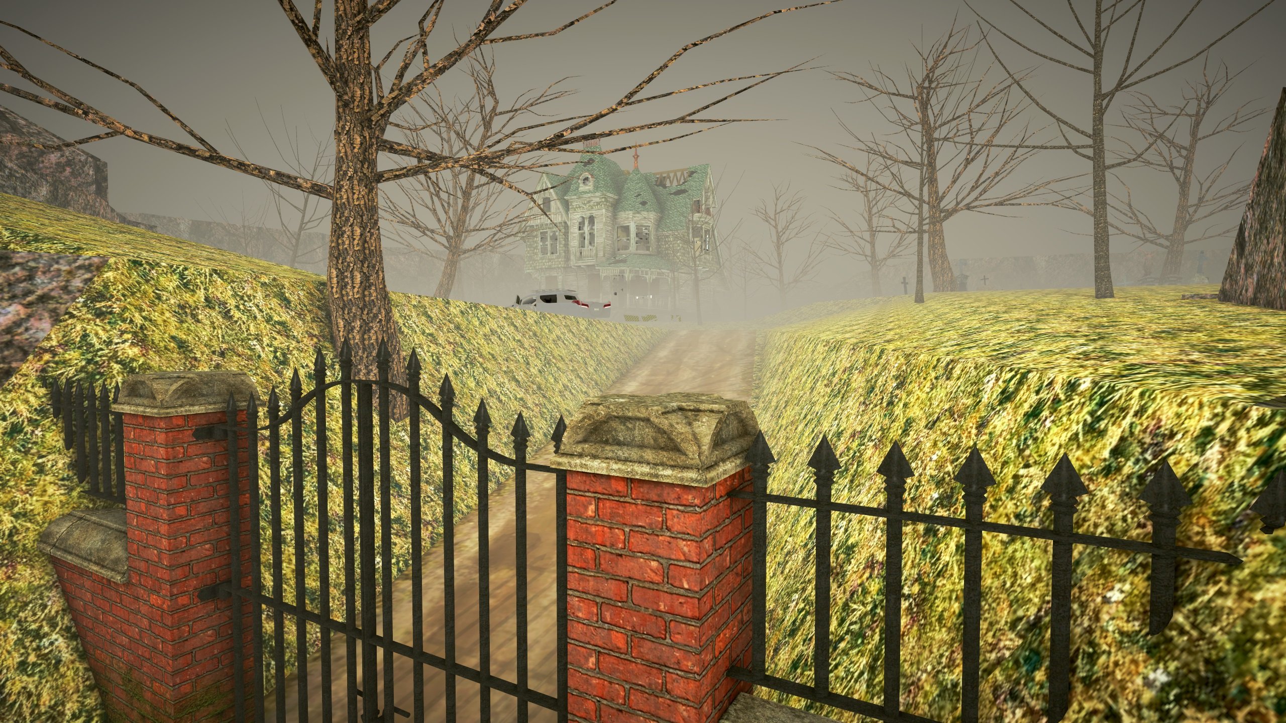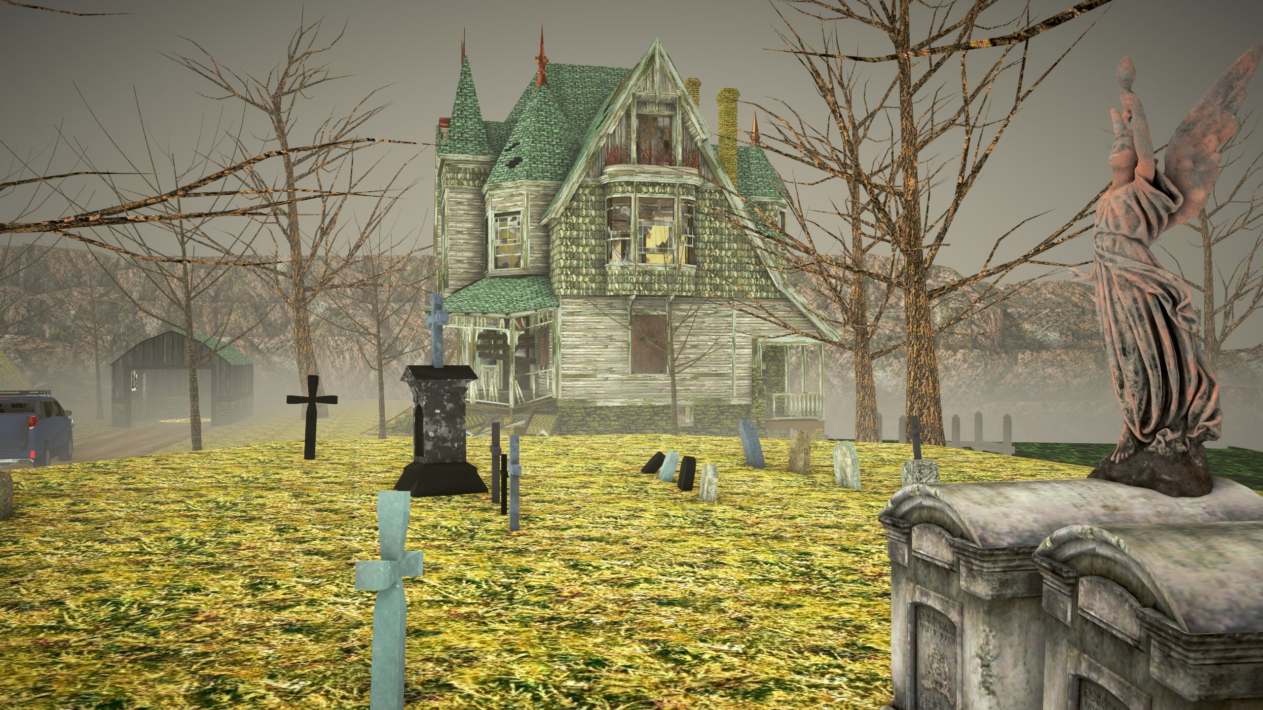 An abandoned estate on a hill. The estate is located on top of a mountain, near it is a lake, a garage, and a family cemetery. There are legends that on Halloween night in the manor you can meet the souls of the former owners of the manor.