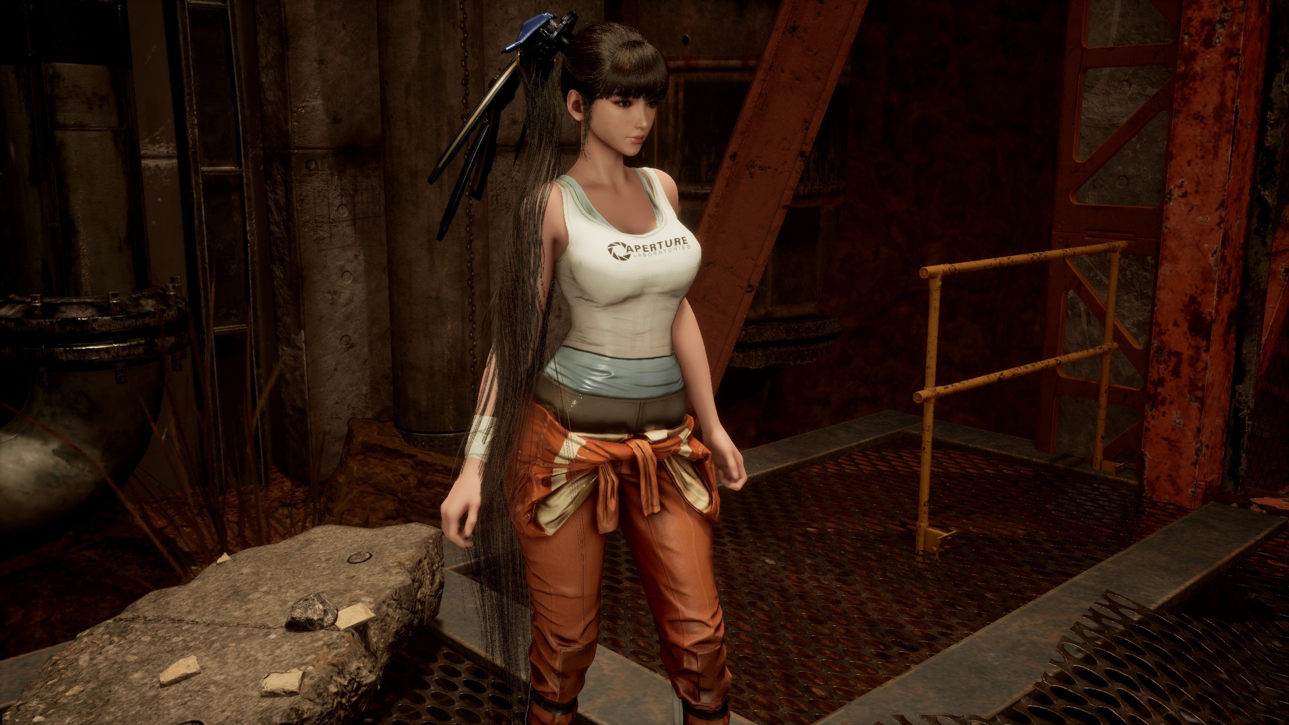 Replaces Motivation outfit with Chell's default outfit from Portal 2
