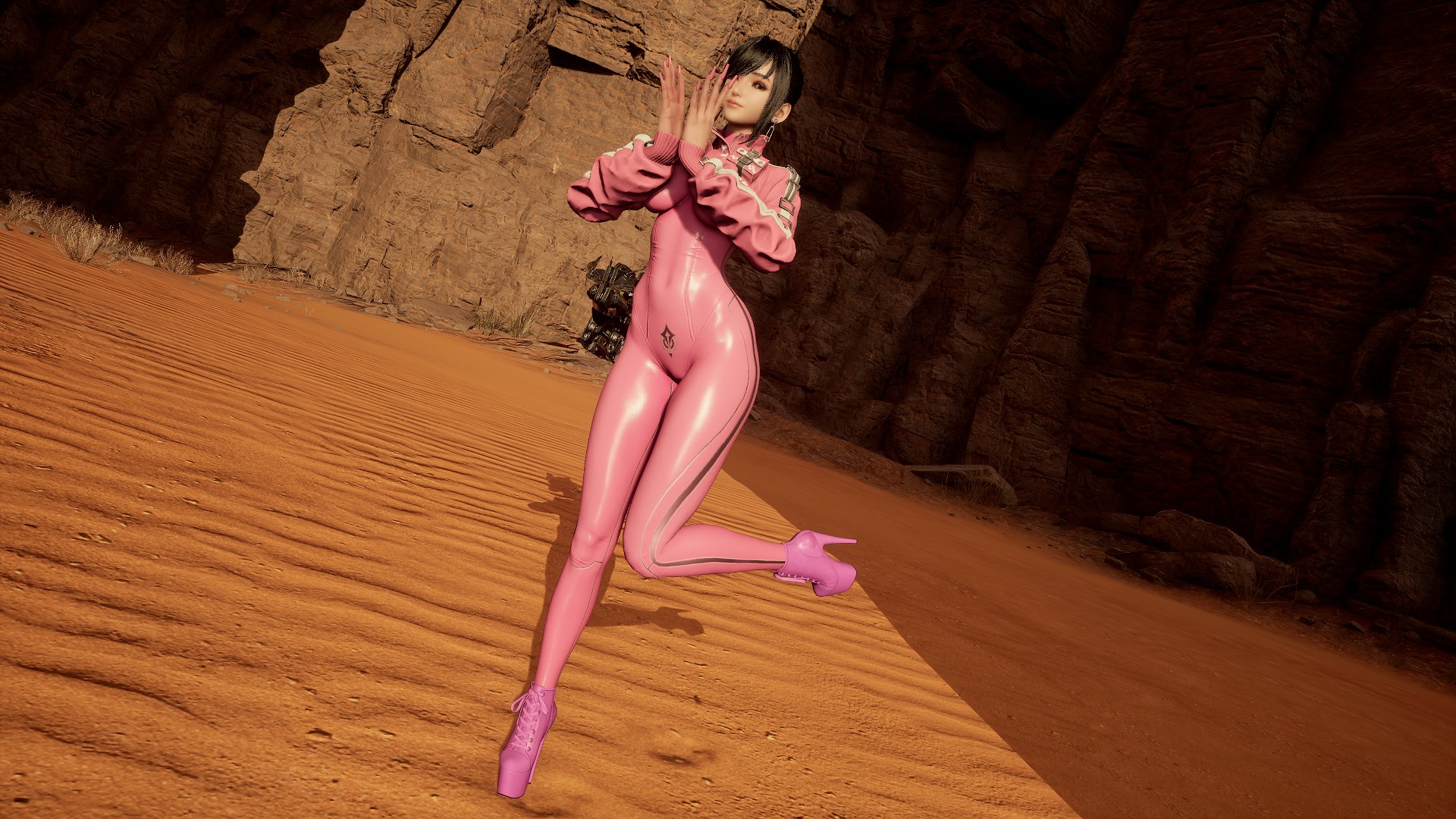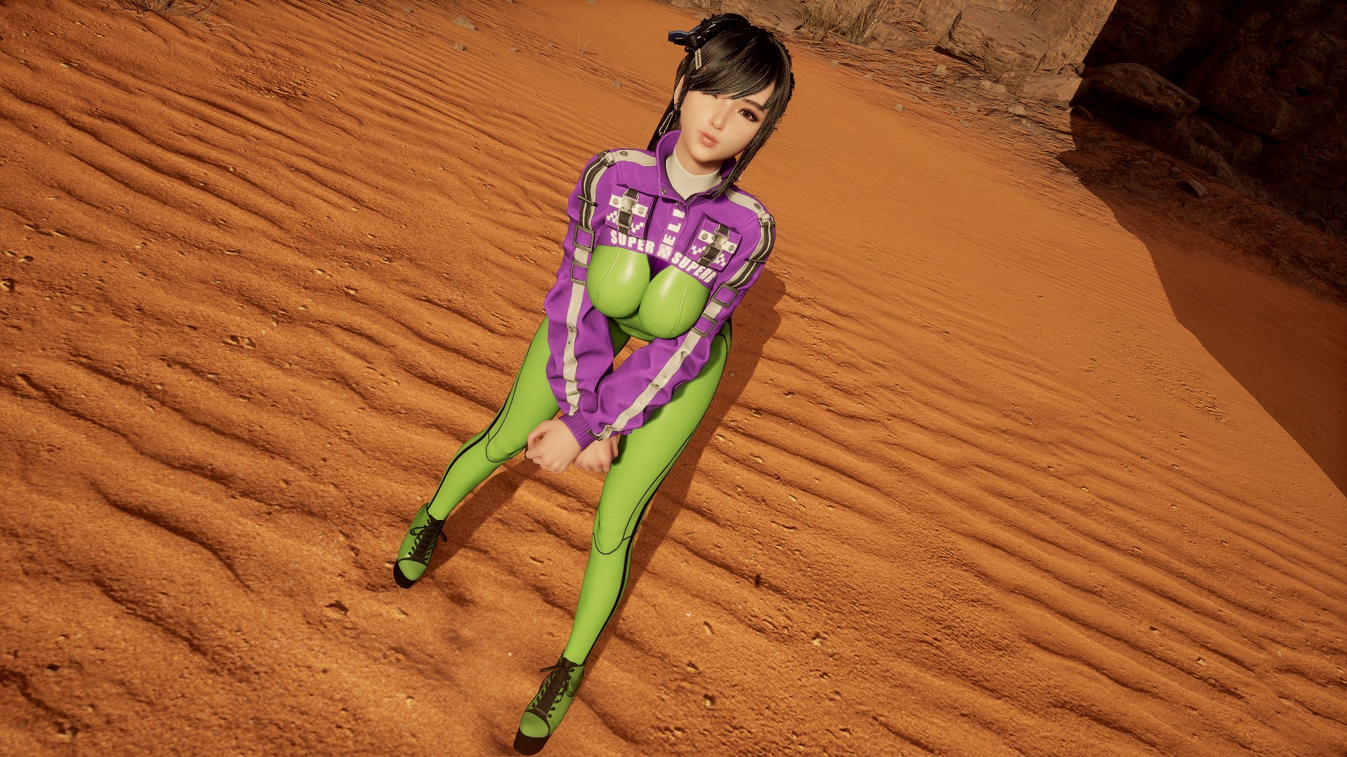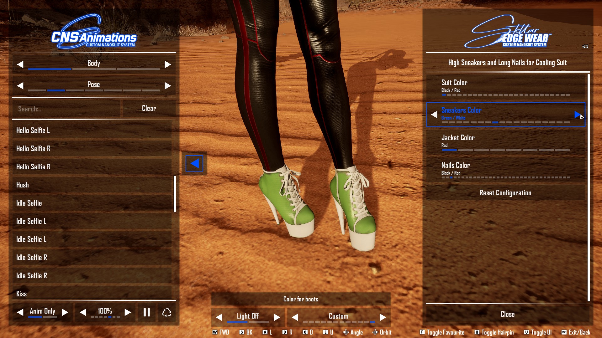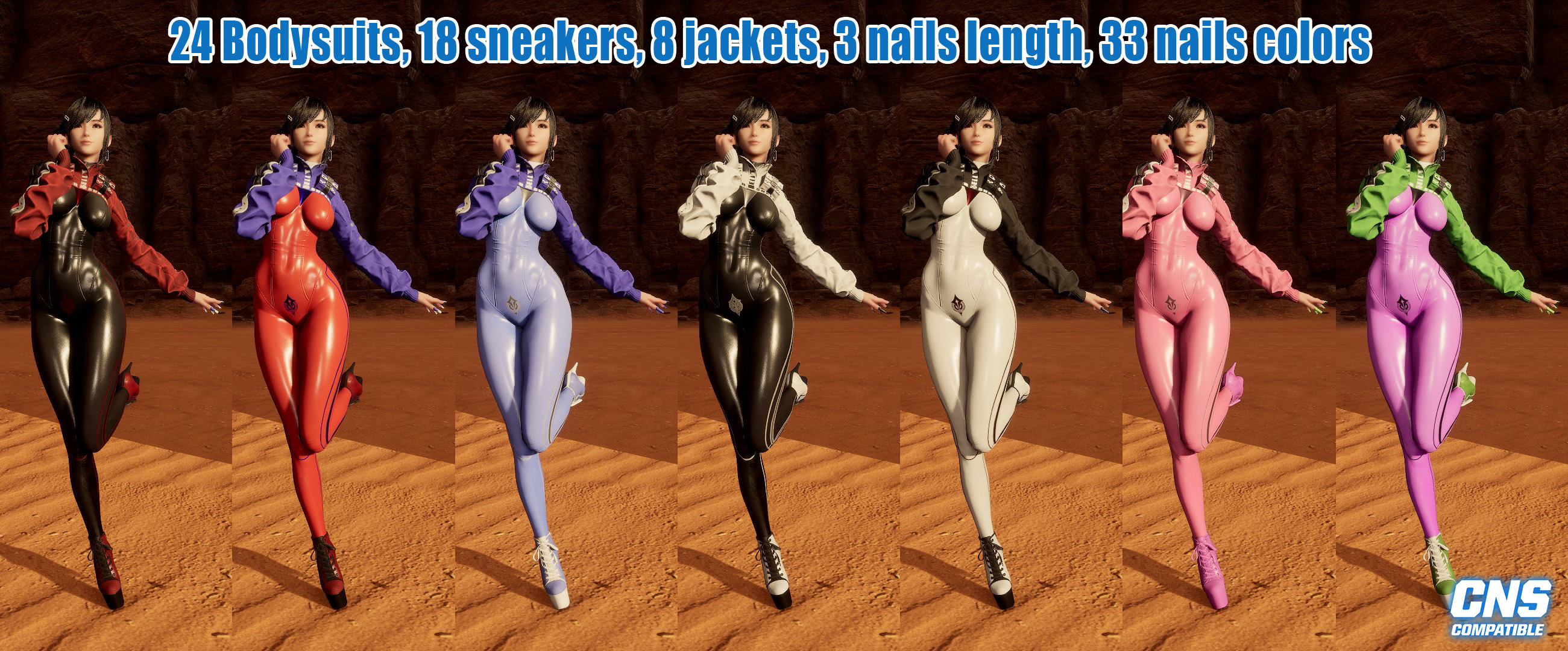 Cooling Suit with high heels sneakers and long nails. Сustomizable colors in CNS.