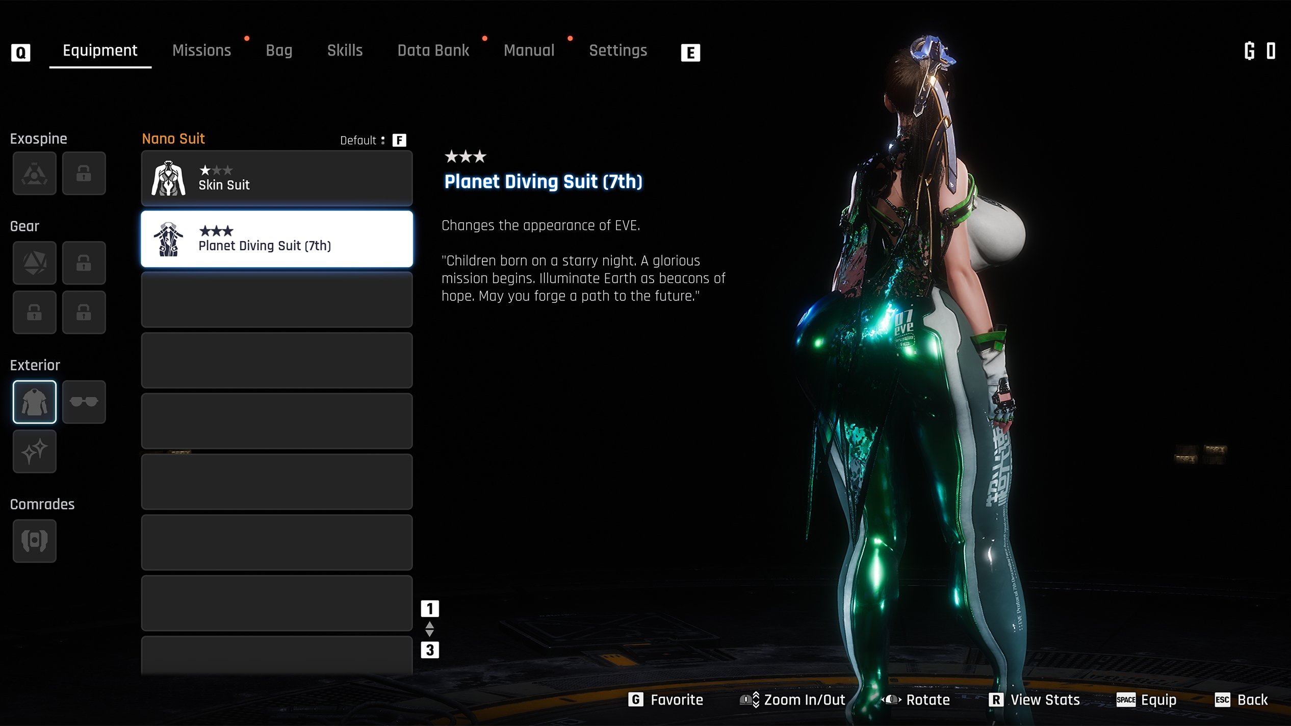 Additionally, this mod modifies Eve's "Inner Suit" nude-appearing under-suit to maintain her larger, thiccer proportions should you decide to take off her Planet Diving Suit.