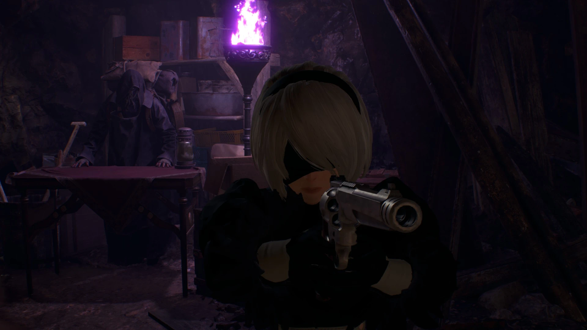 -No eyecover removes 2B's mask.
