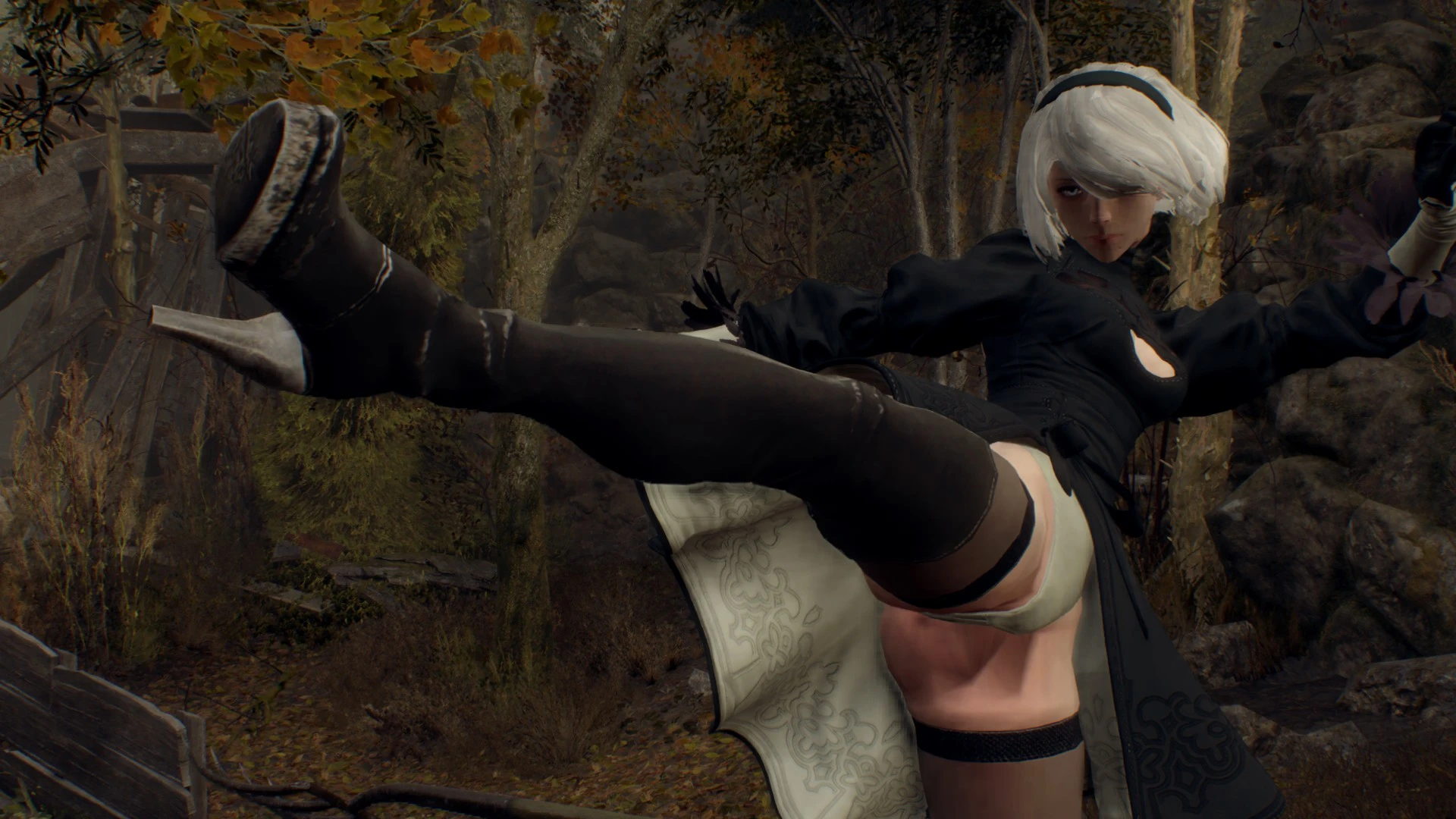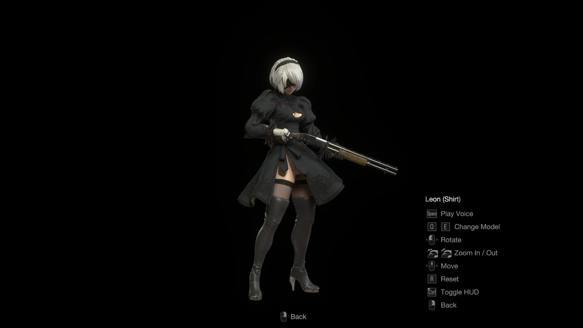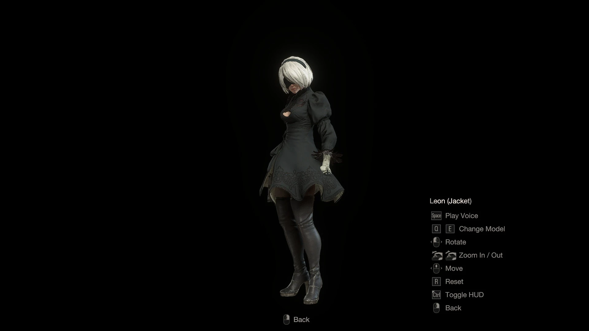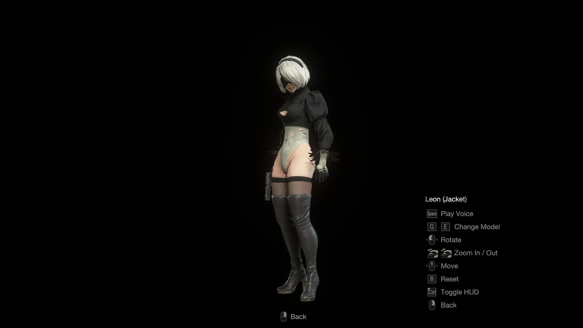 Leon is replaced by 2B from Nier: Automata, using Ada's animations.